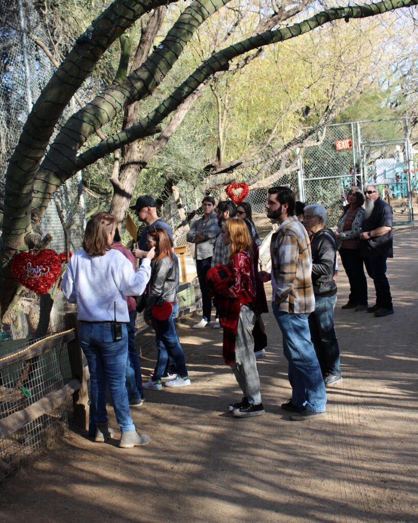 Enjoy a guided sanctuary tour, delicious Valentine-themed refreshments, a souvenir photo at our kissing booth, and a take-home gift basket. A perfect date, friends’ outing, or feel-good adventure, while supporting wildlife!