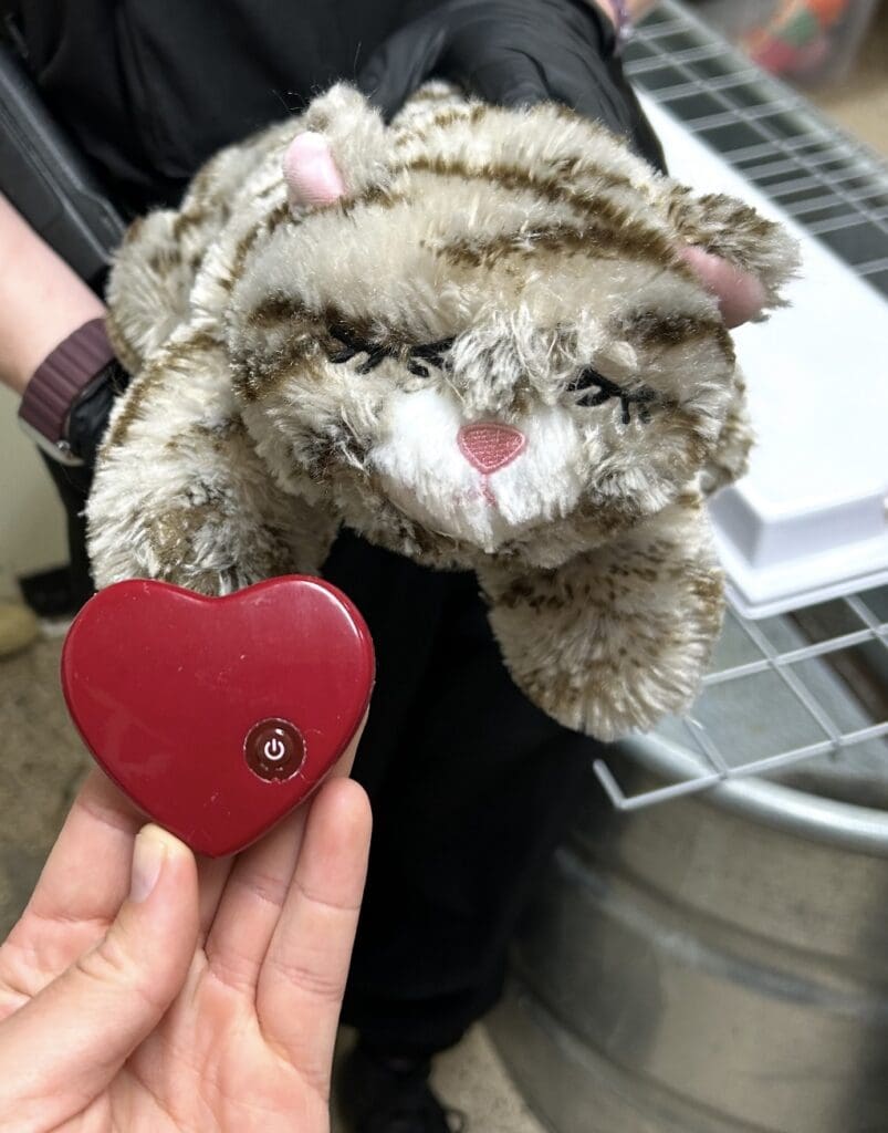 While nothing can truly replace the safety and comfort of their mother, we do everything we can to ease the transition for orphaned babies. One special tool we use is a heartbeat simulator, tucked inside a soft stuffed animal. This simple device mimics the steady beat of a mother’s heart, giving the babies something warm and familiar to snuggle with- something that feels a little like home.