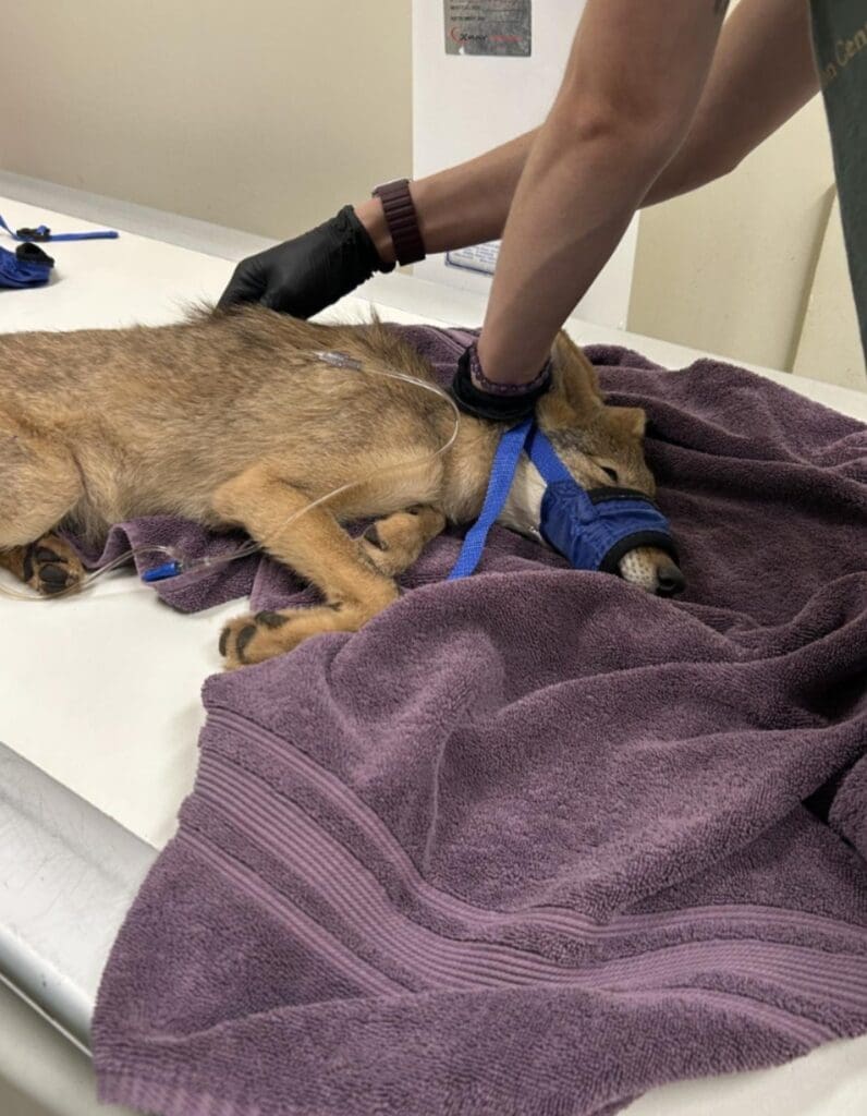 Our vet clinic team sprang into action, starting IV fluids and using various cooling methods. The young coyote was in critical condition, and we were uncertain if she would survive.